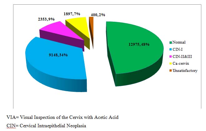 The ultimate goal of the programme is to reduce cervical cancer prevalence through treatment of cervical pre-cancer in this country. Almost all cases of cervical cancer are caused by certain strains of human papilloma virus (HPV). It is also revealed that different socio-demographic and reproductive factors have association with cervical cancer. Research should alsofocus to evaluate the influence of different demographic and reproductive risk factors for developing cervical pre-cancer and cancer.