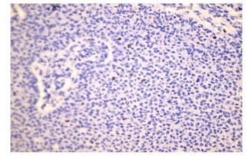 Figure 8. Photomicrograph of granulose cell tumor in immunostaining by Ki-67(x20)
